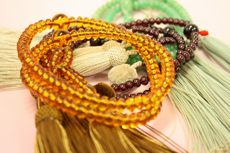 数珠(珠数)は念珠ともいい、仏様に合掌礼拝する時、数珠を必ず手にかけます。数珠は、仏教徒であることを象徴しているものといえます。